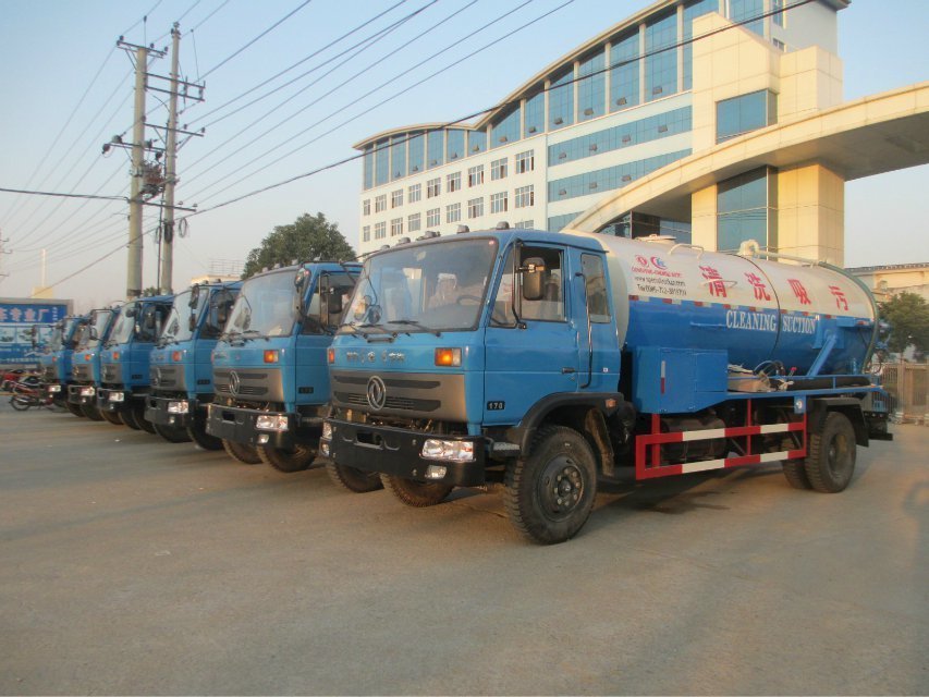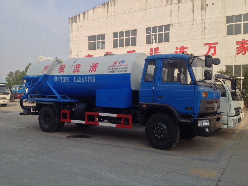 東風145、153平頭清洗吸污車(罐體容積8000--12000L)采用東風原裝二汽底盤,具有安全性能高、動力強勁、噪音小、底盤強度高耐用等優(yōu)點,發(fā)動機采用東風原裝康明斯170馬力、190馬力柴油發(fā)動機和廣西玉柴160馬力、180馬力柴油發(fā)動機,9.00-20-10.00-20輪胎,帶方向助力,不帶空調(diào),斷汽剎,整車外形尺寸(mm):8150 /2495 /3050,總質(zhì)量(kg):14900,整備質(zhì)量(kg):7500,額載質(zhì)量(kg):7205。罐體有效容積:8噸-12噸,帶公家免征公告。