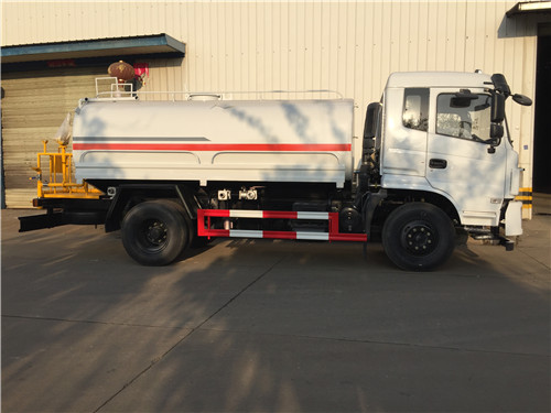 上裝配置:罐體有效容積12立方,采用5毫米厚武鋼碳板板自動焊接制作,配品牌大功率灑水泵,帶前噴后灑側噴,尾部平臺帶高位水炮,可自吸自排。前沖14米寬,水炮射程28米,自吸深度7米。