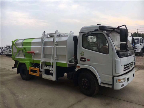 另外側裝垃圾車與壓縮式垃圾車的結構體為:推板壓縮,掛桶側裝,垃圾站對接,垃圾自卸裝置。通過拉桿提升垃圾桶自動倒入垃圾,并往車廂后方推動擠壓垃圾,達到壓縮垃圾的目的,壓縮原理是采用機、電、液壓聯動控制系統、電腦控制及手動操作系統,通過填裝器和推鏟等裝置實現垃圾倒入,壓碎或壓扁,并將垃圾擠入車廂并壓實和推卸;從而實現對接壓縮垃圾車塊轉運運輸功能等。
