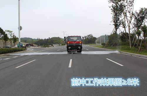 操作系統主要由發動機帶動變速箱,變速箱上安裝的取力器帶動灑水泵,灑水泵產生動力,將罐體內部的液體通過管網噴灑出去。工作范圍:自吸高度:≥7m,灑水寬度:≥14m,最大射程:≥28m;可調節成柱狀,射程≥28m;也可調節成霧狀,射程≥5m。