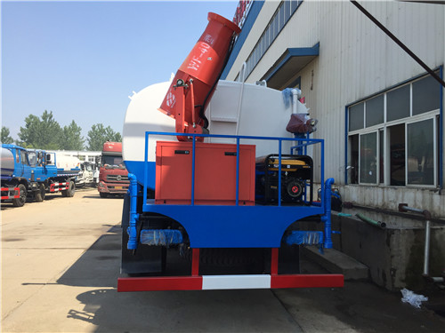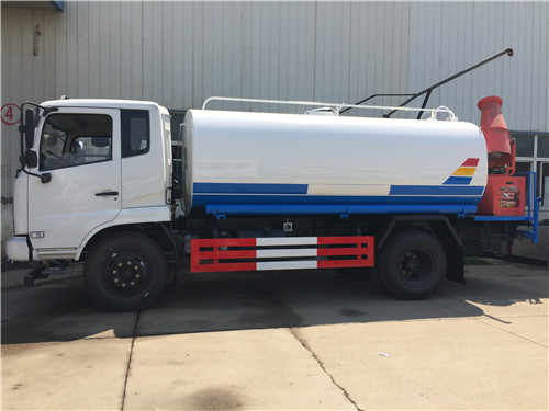 灑水車前裝有鴨形噴嘴或圓頭沖嘴,后面裝有圓柱開灑水噴嘴或蓮蓬頭噴嘴,后部有一工作平臺,裝配有水炮。后部還可裝8個噴嘴(選裝)噴水器一般用于沖洗街道,起除塵和降溫作用,其噴水器可以用調(diào)節(jié)噴嘴螺紋的方法改變噴水器的噴灑方向和角度,高射水炮可以用于城鄉(xiāng)園林綠化及應(yīng)急消防。蓮蓬嘴可以澆落路中間噴水器沖起的灰塵,起到清潔空氣的作用。
