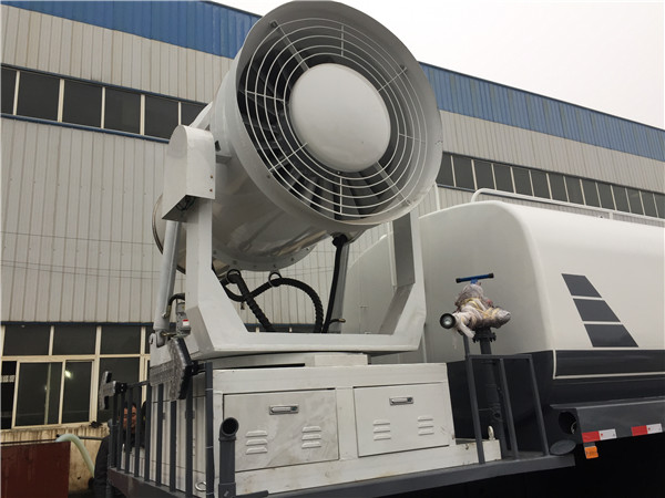 抑塵車又稱為:霧炮車、噴藥車。霧炮車噴射的水霧顆粒達到微米級,能有效分解空氣中的污染顆粒物、塵埃等,在霧霾天氣下用于降塵除霧,可以有效的緩解霧霾,其節水的特性同樣也可以用作灑水車使用。霧炮車還可以降塵、灑水,把樹上的灰塵洗掉。霧炮車噴灑出的水霧與懸浮在空氣中的PM2.5和PM10粉塵顆粒吸附、聚合、沉降,達到消除污染物和減霾的目的。盡管霧炮口徑巨大,但其噴灑耗水量僅為傳統灑水車的兩到三成,覆蓋面積和除塵效率卻高出20倍。既提高效率,也避免路面積水影響交通。