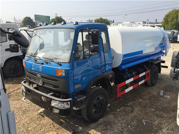 10噸東風灑水車底盤采用東風大多利卡(十堰產),3800mm軸距,帶動轉,7.5尼龍胎,氣剎,電子熄火。前沖后灑,后工作平臺帶高炮,右位花灑,側噴。罐體9.2噸,金龍泵,前沖后灑,后工作平臺帶高炮,右位花灑,側噴。