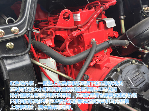 東風多利卡D9灑水車,采用東風玉柴160馬力發動機,六個缸的發動機動力是非常強勁的,不論是同品牌下的發動機都沒有這款馬力強勁,結對時同款車型里的扛把子,無車能別。紅色的外表,一眼看上去就是事東風旗下的玉柴發動機,在對照它的大小和缸的數量就知道是玉柴160馬力的,論價值那也是非常經濟實惠的,在同款里面也是最優惠的價格,只要買的東風多利卡D9灑水車的都說這款發動機馬力強勁,上坡很輕松,灑水效果非常好。