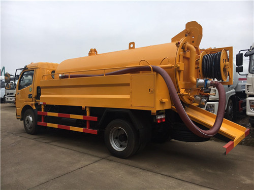 吸污罐體優質碳鋼板采用5-6mm厚,水罐罐體厚度為4mm厚,高壓泵為德國品浮,億豐真空油泵或山東美卓SK6水循環泵,水油分離器,防溢閥,洗手裝置,多路換向閥,真空壓力表,視污窗或視污管,罐體后部出口為100球閥,或150球閥,罐體可液壓舉升,后蓋可液壓打開,吸污管8米。 高壓清洗管60米 帶卷盤。