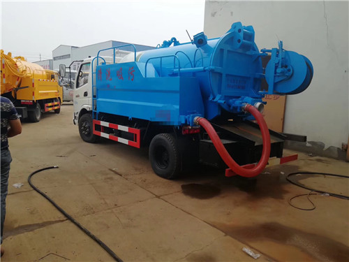 高壓清洗吸污車真空泵只能逆時針旋轉(面對車頭),要從容罐內吸入空氣,或者向容罐內排出空氣,就需要利用四通閥。四通閥分別與容罐、真空泵、回油箱大氣相通。四通閥內設有隔板。改變真空泵的吸氣方向,當四通閥將容罐與真空泵相連時,糞車即進行排卸作業。