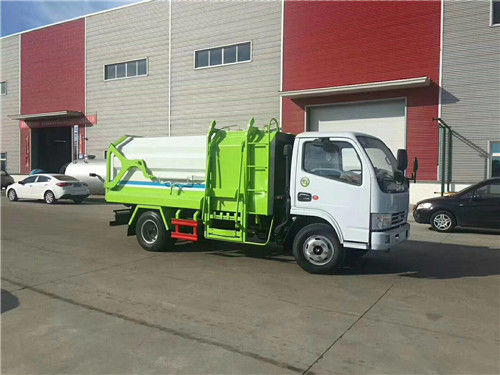 另外側裝垃圾車與壓縮式垃圾車的結構體為:推板壓縮,掛桶側裝,垃圾站對接,垃圾自卸裝置。通過拉桿提升垃圾桶自動倒入垃圾,并往車廂后方推動擠壓垃圾,達到壓縮垃圾的目的,壓縮原理是采用機、電、液壓聯動控制系統、電腦控制及手動操作系統,通過填裝器和推鏟等裝置實現垃圾倒入,壓碎或壓扁,并將垃圾擠入車廂并壓實和推卸;從而實現對接壓縮垃圾車塊轉運運輸功能等。