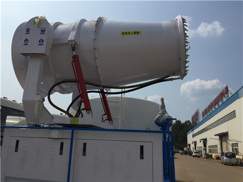 抑塵車(chē)又稱(chēng)為:霧炮車(chē)、噴藥車(chē)。霧炮車(chē)噴射的水霧顆粒達(dá)到微米級(jí),能有效分解空氣中的污染顆粒物、塵埃等,在霧霾天氣下用于降塵除霧,可以有效的緩解霧霾,其節(jié)水的特性同樣也可以用作灑水車(chē)使用。霧炮車(chē)還可以降塵、灑水,把樹(shù)上的灰塵洗掉。霧炮車(chē)噴灑出的水霧與懸浮在空氣中的PM2.5和PM10粉塵顆粒吸附、聚合、沉降,達(dá)到消除污染物和減霾的目的。盡管霧炮口徑巨大,但其噴灑耗水量?jī)H為傳統(tǒng)灑水車(chē)的兩到三成,覆蓋面積和除塵效率卻高出20倍。既提高效率,也避免路面積水影響交通。