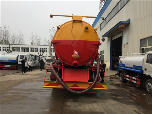 高壓清洗吸污兩用車罐體采用:武鋼優質碳鋼板制作,罐體采用一次成型而成,5個厚,封頭6個厚,進口意大利清洗泵,國產真空吸污泵,60米高壓管,10個沖頭,尾部帶一個自流口,帶視糞窗,洗手裝置,油水分離器,防溢閥,吸污罐帶液壓頂起,后蓋液壓打開,7米吸污管一根,帶國家免征公告,機動上戶,保修手冊,服務手冊,底盤合格證,整車合格證可選玉柴150匹馬力,帶增壓,6檔變速箱,2.7噸前橋,5.5噸后橋,方向助力,斷汽剎,8.25―20鋼絲胎(含一條備胎)