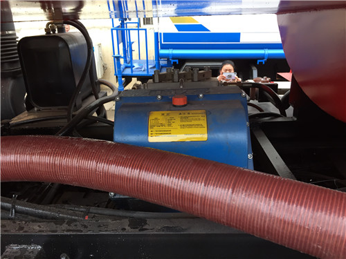 如果高壓清洗吸污兩用車出現了溢罐現象。我們需要清洗被污染的部位:真空泵、油水分離器,水汽分離器、四通閥(吸污泵開關)、氣管。首先排空吸糞車罐體內的污水。然后將讓吸污泵運行一會,排出四通閥、氣管內的污水,雜物(此操作時間要短,防止吸污泵磨損)。然后將吸污泵,油水分離器中被污染的機油放掉,用風槍吹干凈,并更換新的機油。水汽分離器,四通閥以及連接管道,用大量清水沖洗干凈,再用風槍吹干。最后將這些部件原樣裝回,即可照常使用。