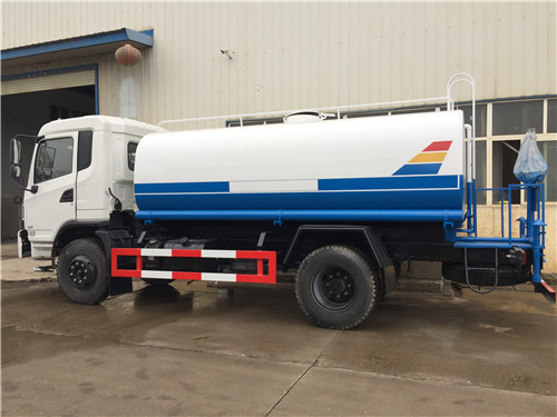 灑水車采用東風(fēng)底盤,白色排半可前翻駕駛室,康明斯210馬力國(guó)五發(fā)動(dòng)機(jī),陜齒小八檔變速箱,4300+1300m雙橋軸距,10噸后橋,10.00R20原廠鋼絲胎,原廠abs,帶方向助力,離合助力器,氣剎制動(dòng)。