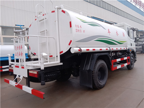 5噸灑水車規格型號;小多利卡5方灑水車(罐體容積:5立方):該車采用東風朝陽柴油發動機,一汽錫柴柴油發動機和昆明云內柴油發動機,白色前翻駕駛室,7.00-16輪胎,汽剎, 5檔變速箱,2噸前橋,4噸后橋,整車外形尺寸:長×寬×高(mm) 5990/1980/2390,總質量(kg)7360,額載質量(kg)3870。罐體有效容積:5噸,帶國家免征公告。