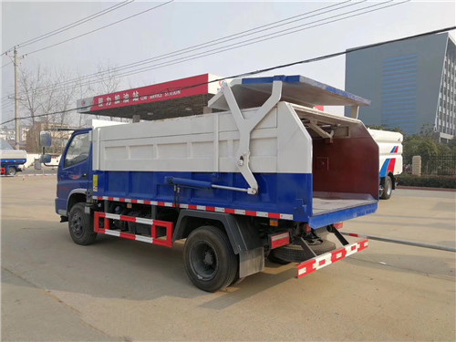 福田時代中馳密封自卸垃圾車功能說明:零散垃圾由箱體兩邊的側門投入,進行收集,然后轉運至垃圾中轉站或者是垃圾填埋場等場所,垃圾箱頂部封閉,不可開啟。