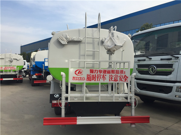 4、客戶購買灑水車時,可以根據實際需要要求提高后噴灑噴嘴的設置高度,以擴大后噴頭的灑水寬度,在灑水場合的小范圍內還可以直接用單噴頭完成灑水作業,帶來更加優秀的壓塵、降溫效果。