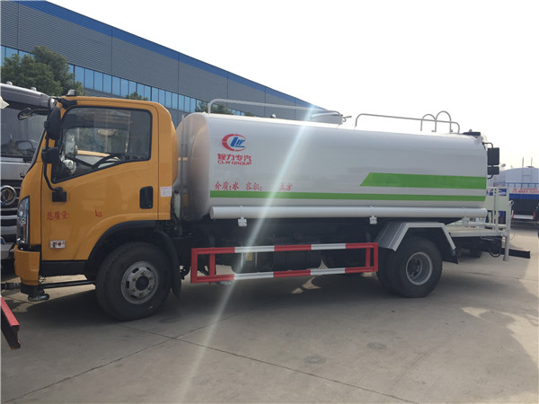 灑水車罐體內部應經常保持清潔,不要等到有水垢時再去清理。因為一旦水垢形成,就不會那么輕易地被去除。