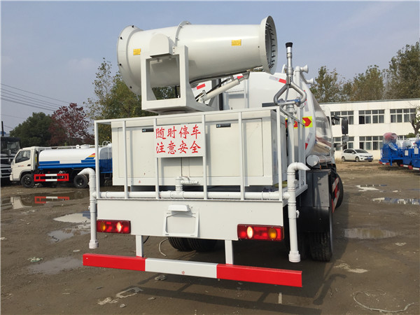 灑水車工藝精良經久耐用,前噴后灑,前裝有鴨形噴嘴或圓頭沖嘴,后面裝有圓柱開灑水噴嘴或蓮蓬頭噴嘴,后部有一工作平臺,裝配有高壓水炮。后部還可裝8個噴嘴(選裝)噴水器一般用于沖洗街道。前沖:寬7米 前沖:寬7米