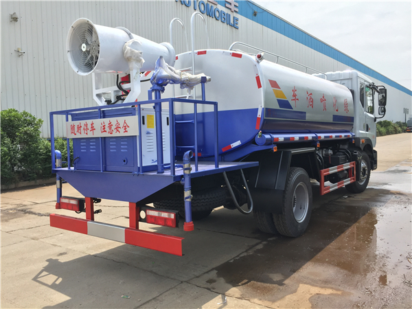 主要由發動機帶動變速箱,變速箱上安裝的取力器帶動灑水泵,灑水泵產生動力,將罐體內部的液體通過管網噴灑出去。工作范圍:自吸高度:≤7m,灑水寬度:≥14m,最大射程:≥28m;可調節成柱狀,射程≥28m;也可調節成霧狀,射程≥5m。