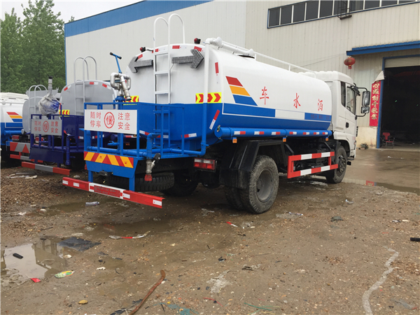 4、東風福瑞卡5噸灑水車的維護與安全:灑水車底盤和發動機部分的使用和保養,按載重灑水車使用說明書執行。水泵的使用和保養,嚴格按其使用維護說明書執行。水源不能有過多雜質,過濾器網應該經常拆洗。冬季來臨前,灑水車應將水泵和水管內的水放空,以防凍裂。灑水車吸水時進水管系統必須保持一定的真空度,才能將水吸入箱內,故進水管系統務必密封可靠.每次工作完畢后,均應將各閥門手柄扳至關閉狀態。各閥門一般不應處于半開狀態,以免影響密封性能。每次工作完畢后,均應及時蓋上進、出口外端的堵蓋。水裝載量不宜超過額定裝載質量。