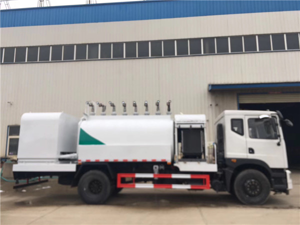 當25噸后雙橋爆破抑塵車輪胎在有積水的路面上滾動時,會擠壓積水層,與輪胎接觸的前部的積水會產生一定的壓力沖向輪胎,這個就和我們把手伸進水缸里攪動水,會發現水會回饋手一個反作用力一樣。但是水對輪胎產生的這個動壓力與速度的平方成正比,當輪胎的轉速再次提高,當動壓力與輪胎的載荷相平衡的時候,這時候輪胎就完全是失去了與路面的接觸,漂浮在水膜上,失去與地面的摩擦力。