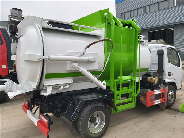 餐廚垃圾車(以下簡稱垃圾車)是用于城鎮內的垃圾收集、轉運、卸料作業的專用車輛。該車是由汽車底盤、自卸油缸、提升機總成、頂蓋(選裝)、附車架、垃圾箱體等組成。該車操作由液壓控制系統來完成,控制方式可以為手動或電氣控。該車主要用于城鎮垃圾的垃圾收集、轉運和卸料。