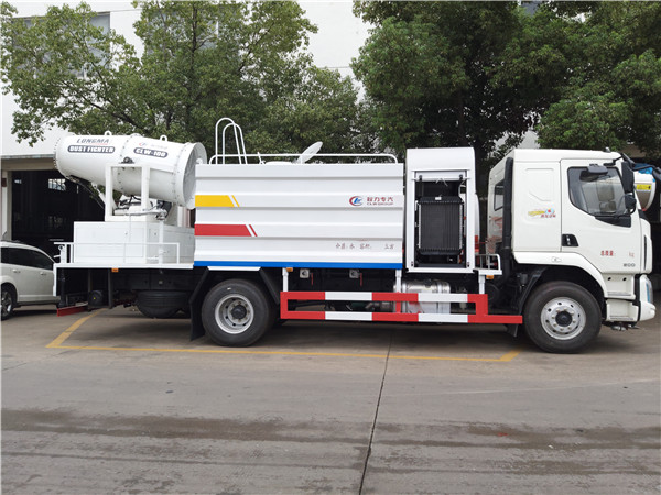 上裝標(biāo)配;罐體容積12立方,罐體為方形,內(nèi)部做防腐,加裝4個進(jìn)口氣動閥(駕駛室內(nèi)操作),主管路鍍鋅,工作平臺,采用億豐60/90大流量水泵,消防接口可自流,音樂喇叭,60米噴霧機(jī)組(CLW-100型),副發(fā)動機(jī)為75KW,萬科7.5KW不銹鋼多級離心泵,22KW風(fēng)扇電機(jī),選裝無線遙控操作,意大利陶瓷中央噴頭,霧化距離:60米(室內(nèi)靜風(fēng)狀態(tài)),實(shí)際射程:100米(溫度、濕度、風(fēng)速等標(biāo)準(zhǔn)狀態(tài)