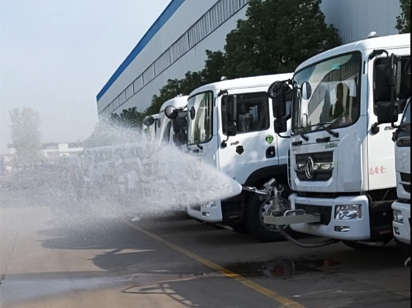 9、冬季及時放水:國六灑水車整車水路系統無防凍裝置,應將水泵和水管內的水放空,以防凍裂.我國北方一般嚴冬不再施工,故在施工結束后,就立即將水泵及水管內的水排空,以防后患,因此嚴寒地區,氣溫低于0攝氏度以下使用后,應立即將灑水泵、水罐及水路系統中的積水全部放凈,注意水泵放水螺塞放水后應關閉嚴密,確保密封,否則將影響水泵吸水。