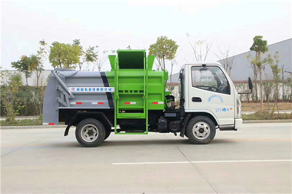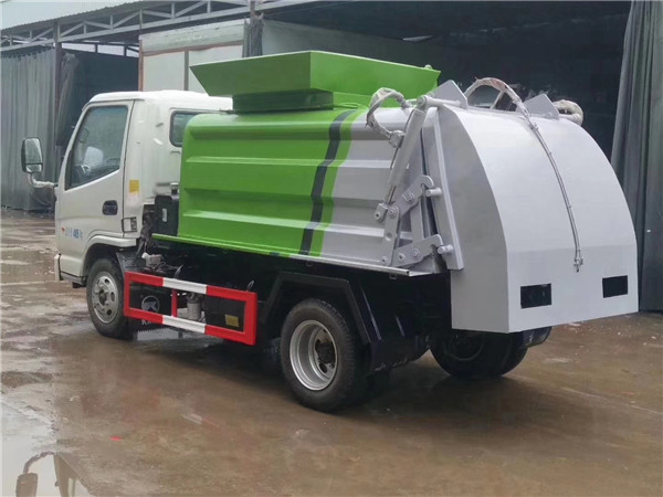 裝料裝置:自動提升裝料裝置設在廂體的前部右側面,由支架、鏈條機構、掛鉤等組成。使用此裝置可將垃圾桶內的垃圾自動提升裝入廂體內。