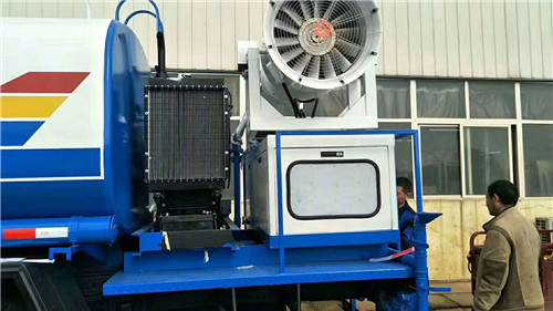 抑塵車風送系統啟動后,起動噴霧系統,先關閉噴霧截止閥,使藥液泵泵出的水匯流到藥箱工作5分鐘,使農藥和水充分混合。打開噴霧截止閥噴霧,調節液泵壓力調節裝置,使工作壓力在規定要求下。