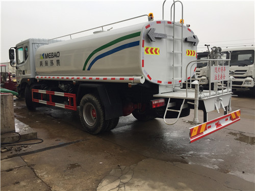 2、后灑:利用裝于車后部的兩個噴嘴將水噴成均勻的扇表形面,向路面灑水;后灑可達10米寬。