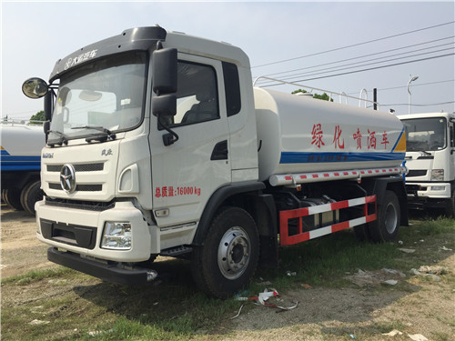 大運灑水車配置有大功率灑水泵,灑水泵帶自吸功能,能垂直吸6米,吸力非常大,還帶有消防接水口,能快速接水,灑水裝置有前沖,后灑,側噴,后工作平臺,平臺上安全綠化灑水水炮,其灑水車寬度14米,水炮射程可達30米,綠化灑水水炮可旋轉360°,還可調節成水柱裝,霧狀,大中小可任意調解,射程非常遠。