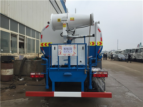 前沖主要是對(duì)路面進(jìn)行沖洗,主要用于環(huán)衛(wèi)路面清洗,后灑主要用于降塵,右位花灑也用于降塵也可以用于澆灌樹(shù)木。后工作平臺(tái)高炮就厲害了,這個(gè)抑塵車(chē)后工作平臺(tái)高炮能用于消防滅火,也能用于澆灌距離遠(yuǎn)又高的樹(shù)木,近的地方可用霧狀進(jìn)行澆灌,就是多功能灑水炮。