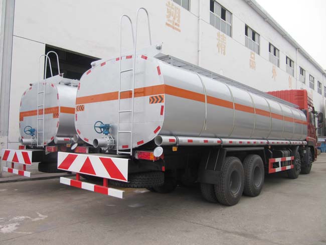 東風(fēng)天龍前四后八自流瀝青運(yùn)輸車主要用于南方地區(qū)短途液體瀝青運(yùn)輸,主要加裝高科技保溫材料,后尾部加裝單口不銹鋼出料口和不銹鋼閥門(mén)。