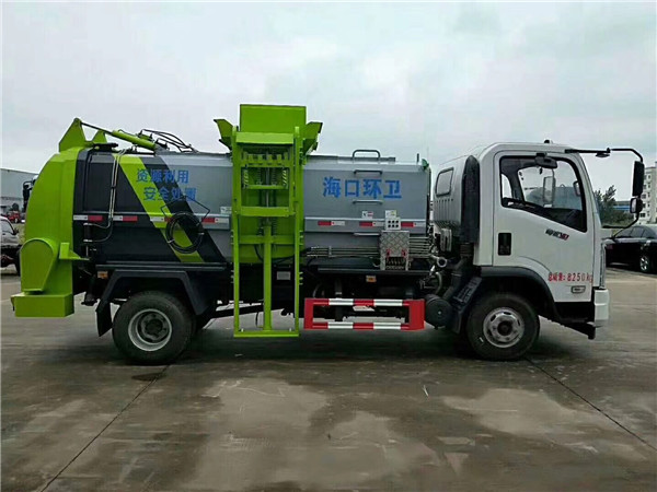對接式垃圾車;此車又稱垃圾壓縮站對接式垃圾車:是用于城鎮垃圾壓縮站內的垃圾轉運、卸料作業的專用車輛。該車操作系統是由液壓控制系統來完成,控制方式可以手動或電控、氣控來實現。