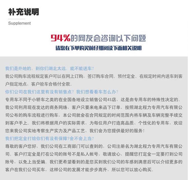 整車出具:正規(guī)底盤合格證、整車合格證、全國統(tǒng)一機(jī)動(dòng)車上戶發(fā)票、隨車工具,車輛保修手冊、使用說明書、全國服務(wù)站名錄等。讓您上戶無優(yōu),方便、快捷、省心!